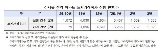 한편 지난해 10월 이후 서울 전역 토지거래허가제 시행 이후 지난달 말까지 누적 신청건수는 총 2만 8535건으로 이 중 2만 4669건(86.5%)가 처리됐다.