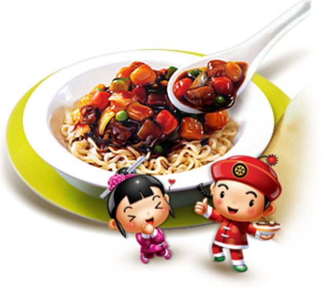 농심 짜파게티 관련 이미지. 캐릭터와 함께 농심 짜파게티가 그릇에 담겨있다. / 농심 제공