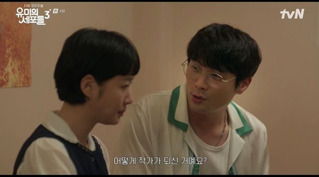 ‘무적야구’ 작가 주호(최다니엘)와 처음 대화를 나누게 된 유미. 주호에게서 순록을 빼내 오고 싶은 유미. 주호는 거기다 학번까지 물었고, 유미는 화제를 돌리려 했지만 실패했다. 주호는 “저랑 네 살 차이밖에 안 나냐. 동안인 거에 비해 나이가 좀 된다”고 했다.