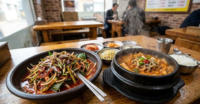 기장의 미식 경험은 투박한 노포의 식탁 위에서 완성된다. 멸치의 선도가 워낙 뛰어나 비린내가 거의 없으며 이를 활용한 무침회와 찌개가 대표적이다. 멸치 무침회는 막걸리 식초와 매콤한 고추장 양념에 미나리, 무채를 섞어 버무려낸다. 부드러운 멸치 살이 아삭한 채소와 어우러져 입안에서 녹아내리는 식감을 선사한다. 멸치 찌개는 된장과 시래기를 듬뿍 넣고 자작하게 끓여내는데 통통한 멸치 살을 상추나 깻잎에 싸 먹는 방식이 현지인들의 정석이다. 국물에 녹아든 진한 감칠맛은 밥반찬은 물론 술안주로도 손색이 없다.