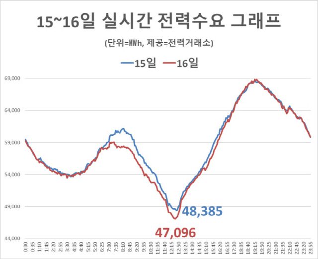 21일 산업용 계절·시간대별(계시별) 요금제 개편안이 적용된 지난 16일 전후의 실시간 전력수급 현황을 분석한 결과, 지금까지 유의미한 시간대별 전력 수요 변화는 관측되지 않았다.