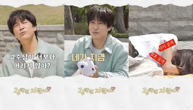 차태현은 "교수님이 너보다 나이가 어리지 않나. 네가 지금 50..."이라며 그의 나이를 언급했다.