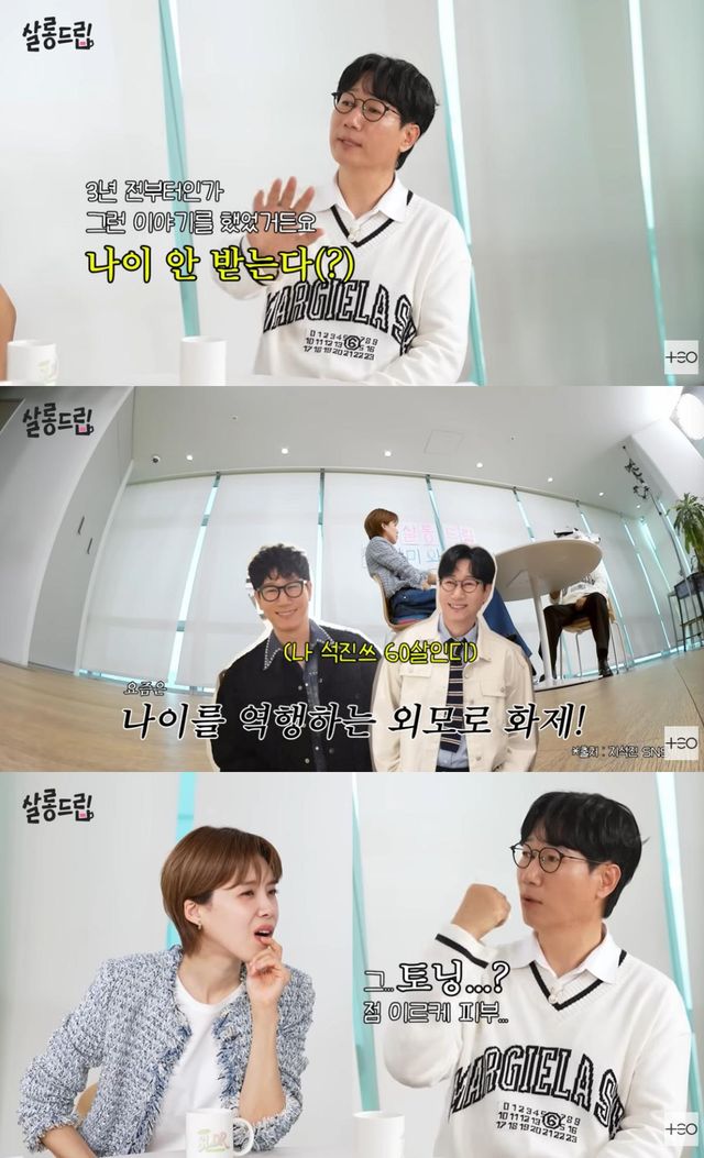 지석진은 "작년에는 써니레이저 했다. 이야 많이 했네"라며 시술 과거를 회상했다.