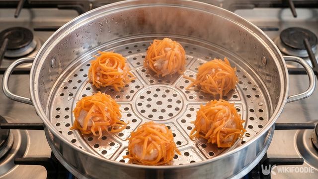찜기는 물이 팔팔 끓어 김이 충분히 올라올 때 조리를 시작해야 한다. 뜨거운 증기 위에서 딱 5분간 쪄내면 새우는 촉촉해지고 당근은 알맞게 익는다. 당근이 조금 두껍다면 1분 정도 시간을 늘려 조절한다.