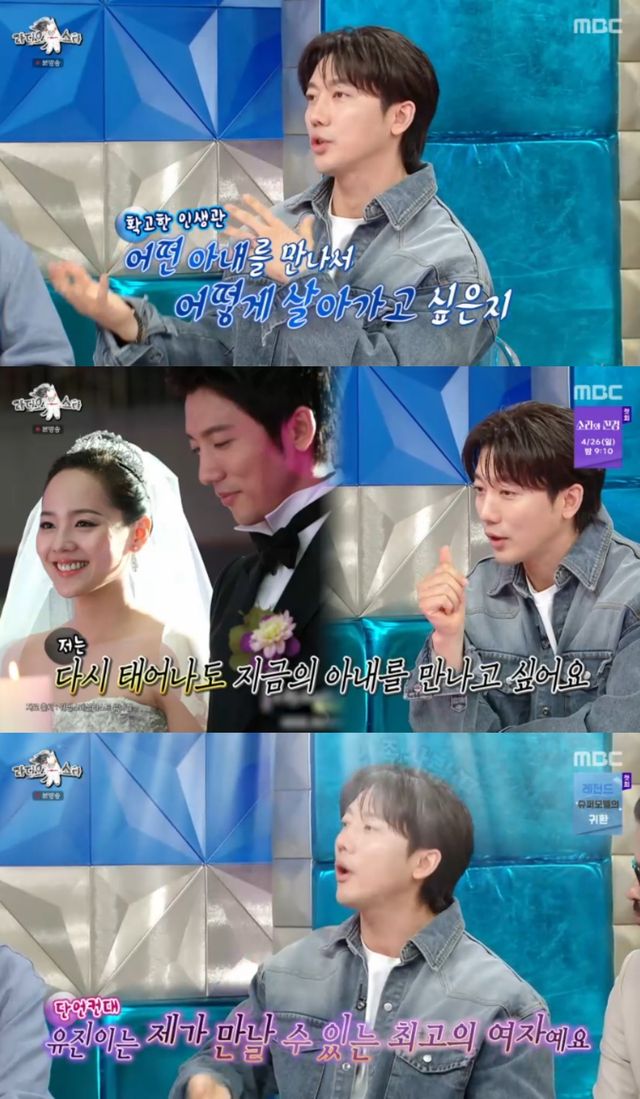 이에 기태영은 "요즘에 좋은 남편, 좋은 아빠라는 말을 듣는데, 저는 다시 태어나도 유진이와 결혼을 할거다. 제가 만날 수 있는 최고의 여자다. 정말 괜찮은 사람"이라고 자랑을 아끼지 않았다.