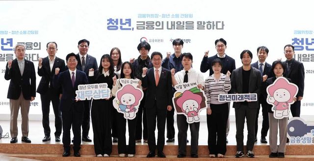 이억원 금융위원장(앞줄 왼쪽부터 네번째)이 지난 1월 22일 서울 중구 온드림 소사이어티에서 열린 청년 소통 간담회 '청년, 금융의 내일을 말하다'에서 참석자들과 기념촬영을 하고 있다. / 뉴스1