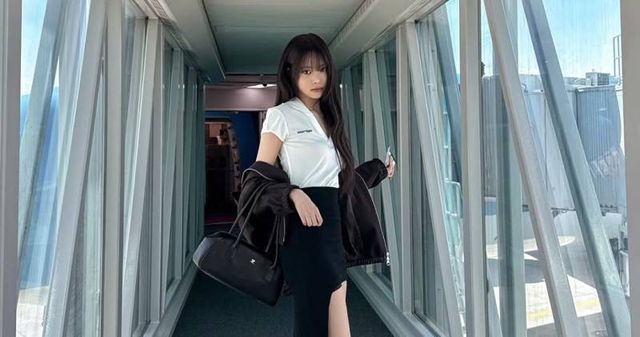 컬러 바지가 꼭 강렬한 색감일 필요는 없습니다. 채도가 낮은 파스텔 톤으로도 충분히 트렌디한 무드를 연출할 수 있는데요. 아일릿 모카는 파스텔 옐로우 컬러의 스키니진으로 경쾌한 여름 스타일을 완성했습니다. 특히 삼중으로 레이어드된 허리단 디자인이 눈에 띄는데요. 보라와 핑크 컬러가 겹치면서 단조로울 수 있는 옐로우 컬러에 키치함을 더해 줬어요. 여기에 양말은 서로 다른 컬러로 믹스매치해 포인트를 주면서도, 바지와 톤온톤으로 맞춰 과하지 않게 코디한 점에서 센스를 엿볼 수 있죠. 하의에 색깔을 다양하게 사용했다면, 상의는 모카처럼 그레이 같은 무채색으로 눌러주는 게 핵심이에요. 이렇게 하면 컬러 포인트는 살리면서도 룩이 한층 정돈돼 보일 거예요.