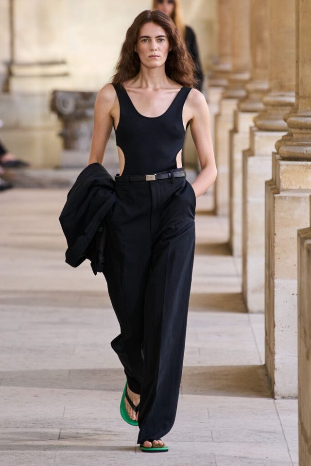 2026 S/S 컬렉션에서도 롱 슈 띠어리는 계속 됩니다. 오라리는 깊게 파인 블랙 슬리브리스 톱과 하이웨이스트 팬츠에 선명한 그린 컬러의 플립플롭을 매치했습니다. 자칫 엄숙해 보일 수 있는 룩에 생동감을 불어넣으며 미니멀리즘의 새로운 해석을 제안했습니다. 발렌시아가는 선명한 퍼플 컬러의 홀터넥 미니 드레스와 풍성한 러플 디테일이 주는 화려함 속에 옐로 텅 샌들을 매치했습니다. 보완색 대비를 극대화하면서도 이브닝 웨어의 고정관념을 보란 듯이 뒤집었죠. 프라다는 편안함을 재해석 했습니다. 바디를 따라 매끈하게 흐르는 트랙수트는 본래의 이지한 무드를 유지한 채, 발끝에서 전혀 다른 방향으로 전개됩니다. 스니커즈 대신 선택한 단정한 레더 슈즈가 느슨한 실루엣에 또렷한 긴장감을 더하며, 스포츠웨어 스타일링을 새롭게 변주했습니다.