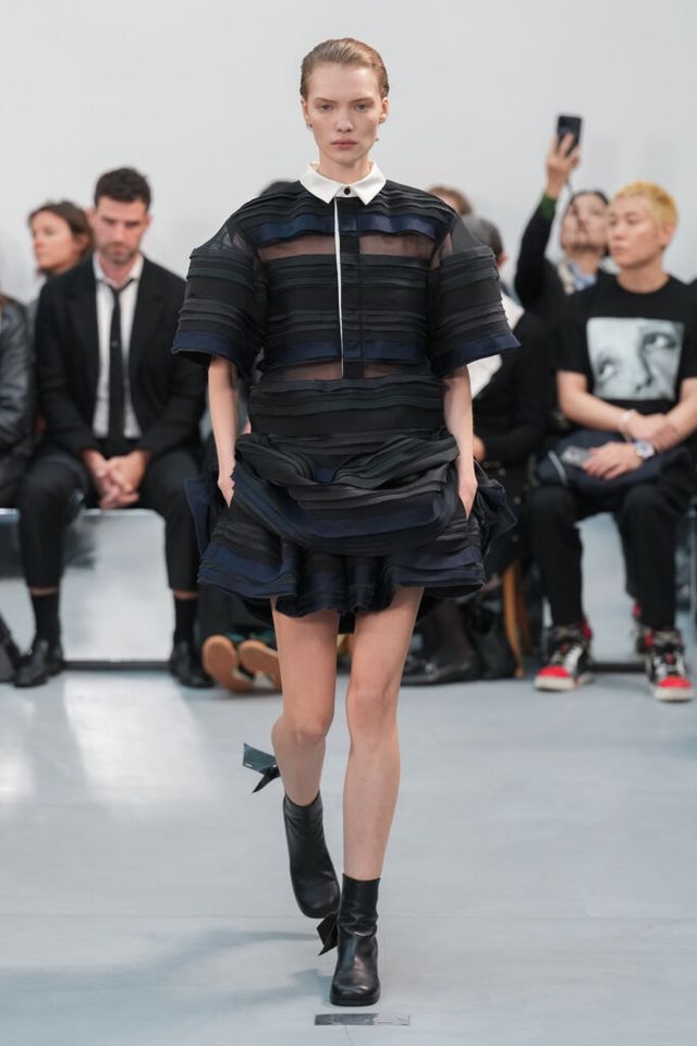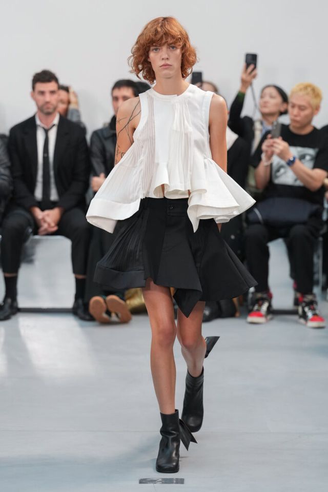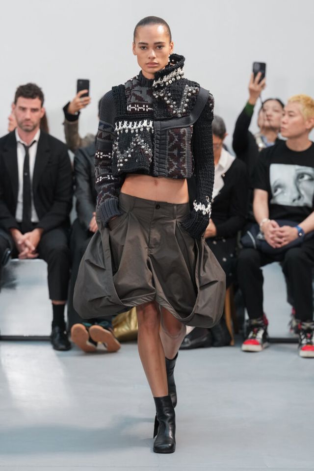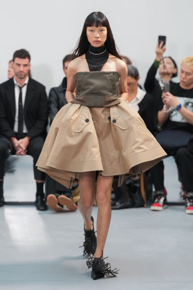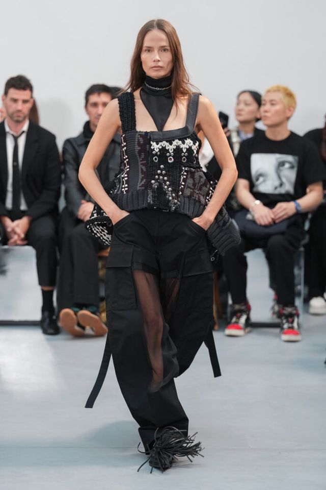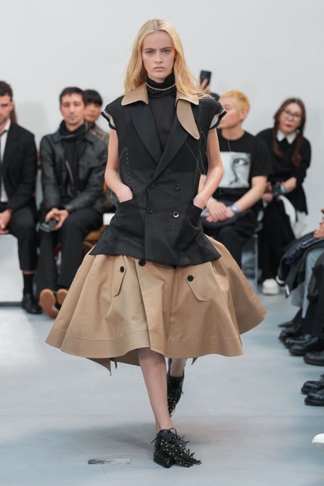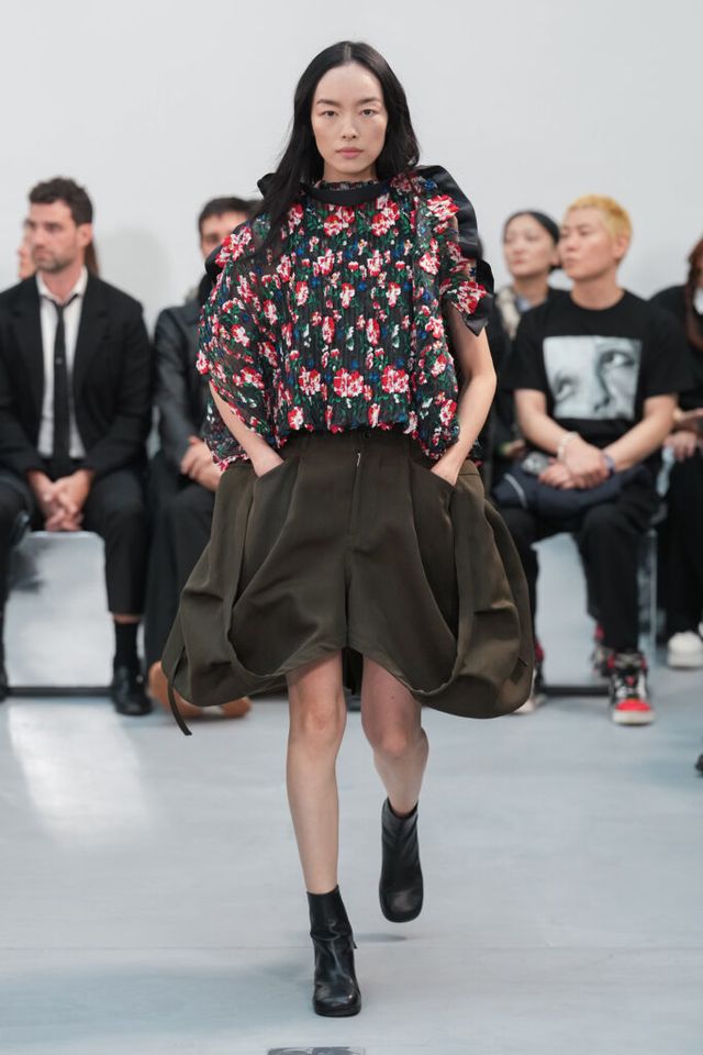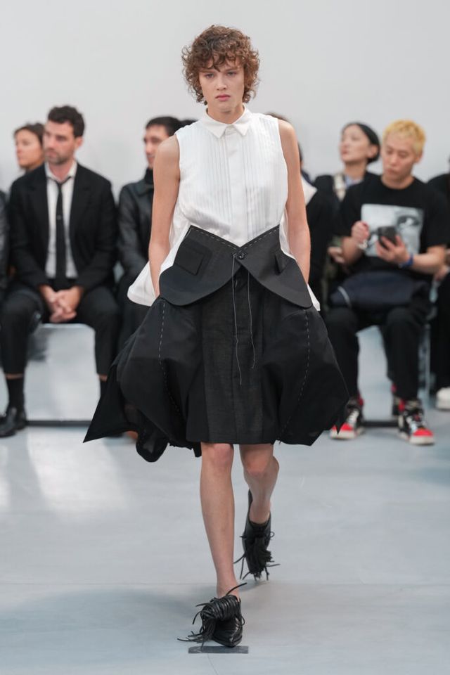 NOTE 여전히 기존의 패션 관념에 도전하고 서로 다른 아이디어를 하나의 조화로운 형태로 엮어내는 장기를 발휘 중인 사카이. 이번 시즌, 아베 치토세는 “우리가 누구인지를 이루는 본질, 그것이 오늘의 메시지다”라고 전하며, 익숙함과 새로움이 공존하는 디자인 경지를 통해 옷에 대한 전적으로 새로운 시각을 제시했다. 이번 시즌 컬렉션을 관통하는 핵심은 여러 겹의 구조를 통합한 캐시미어 소재의 턱시도 재킷과 팬츠, 풍선처럼 부풀어 오른 새로운 형태의 쇼츠와 스커트에서 드러난다. 브랜드 고유의 하이브리드 미학과 혁신, 독창성, 절제된 세련미가 빛을 발한 순간이었다.