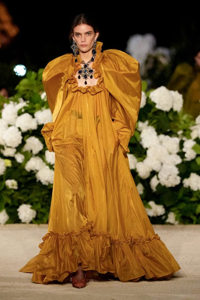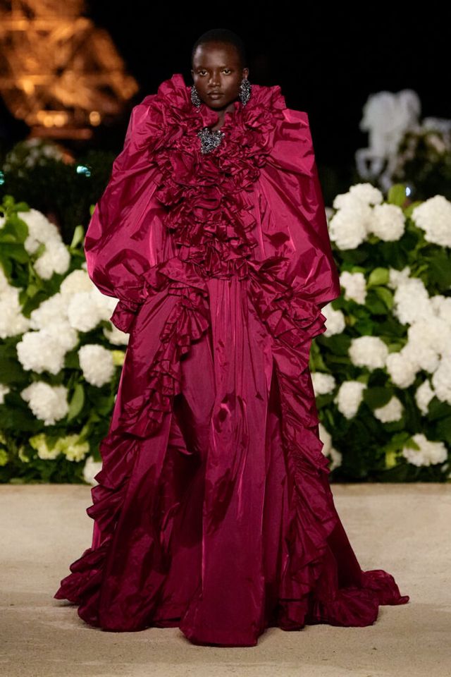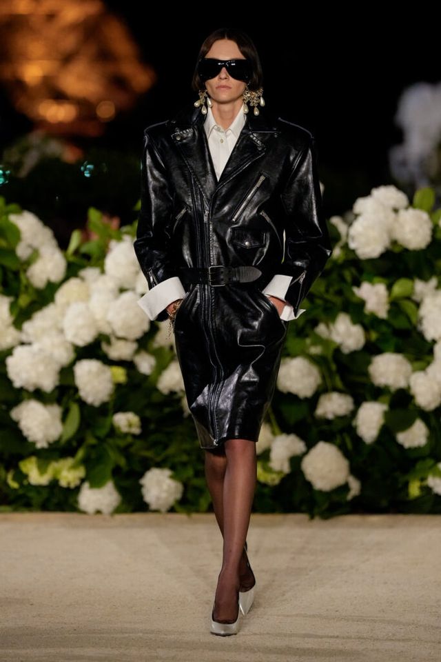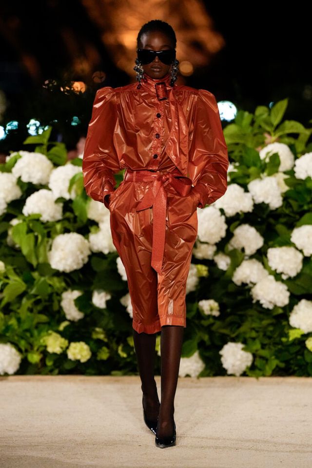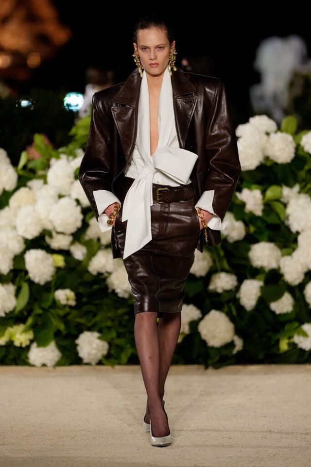 NOTE 파리의 낭만이 내려앉은 밤의 트로카데로 정원. 안토니 바카렐로는 생 로랑의 미학을 통해 다수의 형태로 존재하는 여성의 아름다움을 3개 챕터로 명료하게 구분했다. 먼저 커다란 보 디테일 블라우스와 레더 재킷, 펜슬 스커트를 입은 여인의 매력적인 행진 뒤로, 이브 생 로랑이 사랑했던 찬란한 컬러를 입은 실용적인 룩의 향연이 펼쳐졌고, 뒤를 이어 애드벌룬처럼 부풀어 오른 나일론 드레스가 대미를 장식한다. 영화적 분위기 속에서 생 로랑의 여성은 고전적인 동시에 다면적인 모습으로 존재감을 드러냈다.