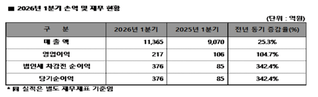 KGM은 올해 1분기 별도 기준 영업이익이 217억원으로 전년 동기 대비 104.7% 증가했다고 24일 공시했다. 같은 기간 매출은 25.3% 늘어난 1조1365억원을, 당기순이익은 342.4% 증가한 376억원을 달성했다.