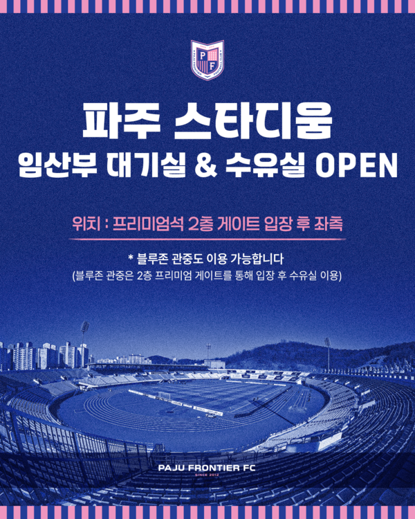 [풋볼리스트] 김희준 기자= 파주프런티어가 경기장 내 임산부 대기실 및 수유실을 오픈하며 가족 중심의 팬 친화적인 정책을 펼친다.