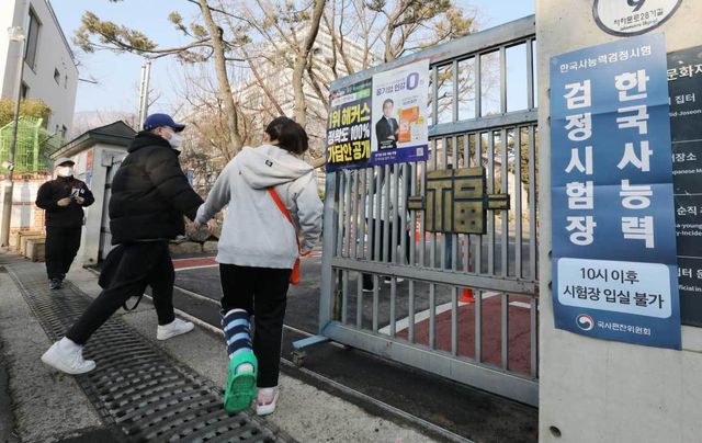 지난 2022년 제57회 한국사능력검정시험이 열린 12일 오전 응시생들이 시험장인 서울 종로구 경복고등학교로 들어서고 있다. / 뉴스1