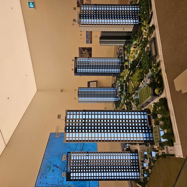 견본주택 내부 중앙에 설치된 단지 모형도. 동 간 거리와 조망 방향, 단지 내 거리가 한눈에 들어온다. = 김은수 기자