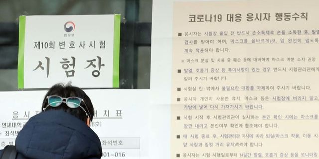 2021년 1월 5일 한 변호사 시험 응시생이 서대문구 연세대학교 시험장에서 수험번호를 확인하고 있다. / 연합뉴스