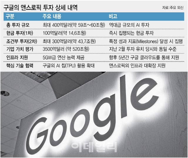 구글은 우선 100억 달러를 현금으로 투자하고 이후 성과 목표를 충족하면 추가로 300억 달러를 투입하기로 했다. 이번 투자에서 앤스로픽의 기업가치는 3500억 달러로 평가됐다. 이는 지난 2월 투자 라운드 당시와 같은 수준이다. 구글은 투자와 함께 앤스로픽의 컴퓨팅 인프라 확장도 지원한다. 앞으로 5년간 구글 클라우드를 통해 총 5기가와트(GW) 규모의 연산 능력을 제공하고 추가 확장 가능성도 열어둔 것으로 전해졌다. 이는 대규모 데이터센터 구축에 맞먹는 수준으로 AI 모델 개발 경쟁에서 핵심 자원으로 꼽힌다.
