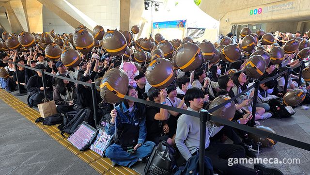 ▲ 다같이 모여 풍선을 흔드는 모습이 실로 장관입니다 (사진: 게임메카 촬영)