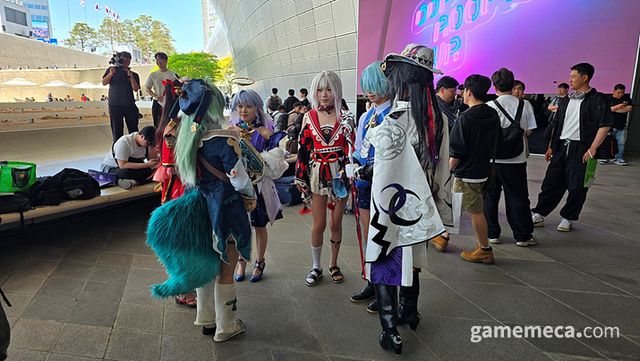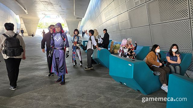 이날 DDP에서는 여러 캐릭터 코스어 분들이 한자리에 모여서 마치 게임 속에 들어온 듯한 장면을 연출했는데요. 근처를 구경하시던 일반인과 외국 관광객 분들도 즐거운 마음에 함께 하는 모습을 보여줬습니다.