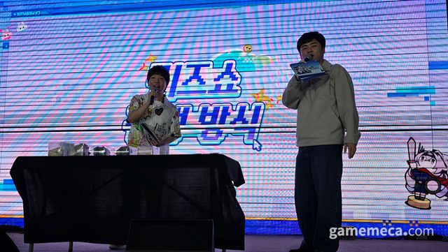 ▲ 행사 진행 MC를 맡은 샘웨(좌)와 도티(우) (사진: 게임메카 촬영)