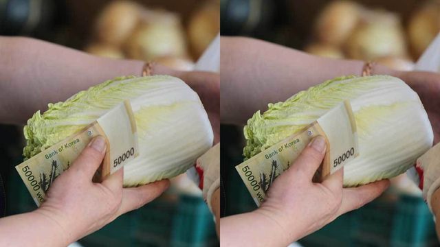 시장에서 배추를 구매하고 있는 시민의 모습. / 뉴스1