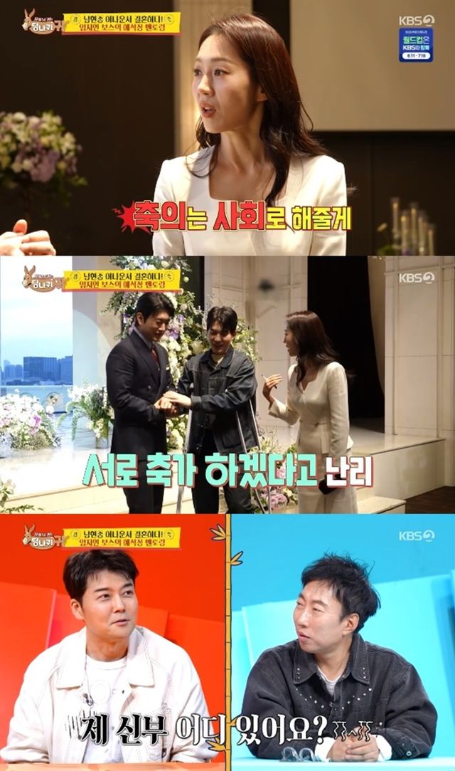 이에 즉석에서 축가 오디션이 진행됐다. 성악 전공인 김진웅은 '바보에게 바보가'를 불렀다. 엄지인은 '아나까나'를 불렀다.