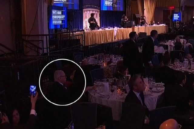 25일(현지시간) 워싱턴DC 힐튼 호텔 연회장에서 총격 사건이 발생하자 참석자들은 일제히 테이블 아래로 몸을 숨겼다. 그러나 CNN 화면에는 이와 대조적인 장면이 잡혔다. 한 남성이 전채(에피타이저) 요리로 나온 부라타 치즈 샐러드를 태연히 먹으며 주변을 둘러보고 있었다.
