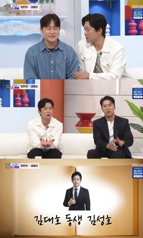 [메디먼트뉴스 김민정 기자] 아나운서 출신 방송인 김대호가 오늘날의 자신을 있게 한 일등 공신으로 친동생 김성호를 꼽으며 뜨거운 형제애를 과시했다. 28일 오전 방송된 KBS 1TV 아침마당-소문난 님과 함께에는 김대호가 가수 장민호와 함께 출연해 자신의 인생사를 되짚어보는 시간을 가졌다. 이날 방송에서 김대호는 내 인생의 결정적 장면이라는 주제에 대해 주저 없이 동생 김성호를 언급해 시청자들의 호기심을 자극했다.