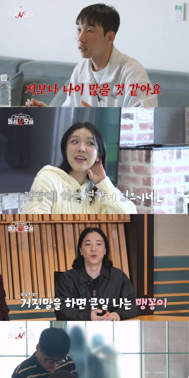 이날 방송에서는 돌싱녀 카멜리아와 모솔남 맹꽁이의 데이트 중 스튜디오를 발칵 뒤집은 ‘돌직구 사건’이 발생한다. 시종일관 솔직한 매력을 뽐내던 맹꽁이가 카멜리아에게 “나보다 나이가 많은 것 같다”며 팩트 폭격을 날린 것. 필터 없는 답변이 계속되자 채정안은 “대화가 이어질 때마다 무서워 죽겠다”며 탄식했고, 넉살 역시 “맹꽁이님은 거짓말을 절대 못 하는 스타일 같다”며 경악을 금치 못한다.