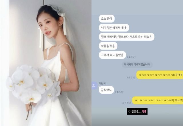 해당 대화에서 최환희는 최준희에게 ‘오늘 꿈에 네가 결혼식에서 내 옷 핑크 넥타이, 핑크 와이셔츠로 준비해 놓은 악몽을 꿨다. 그래서 XX 울었다. 끔찍했다’고 전했다.
