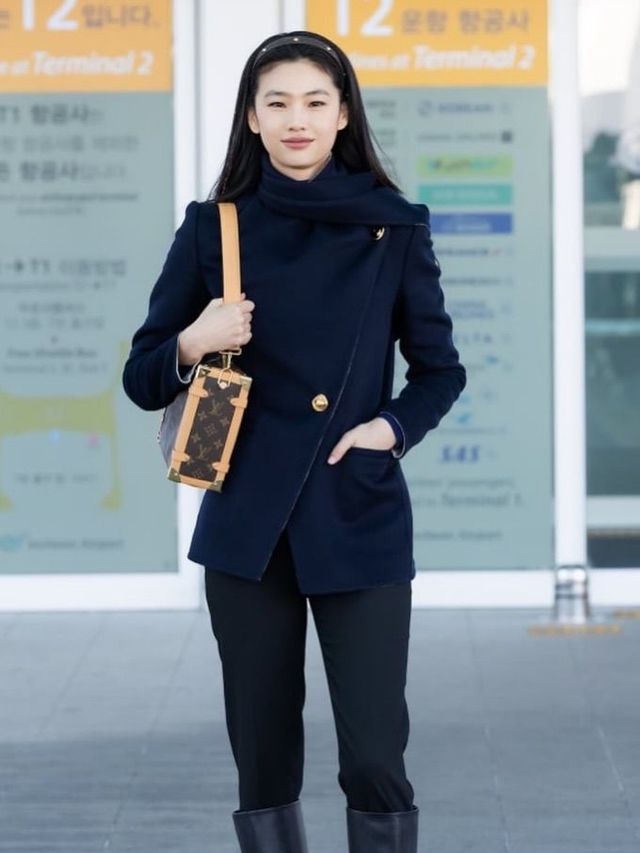 단정한 룩을 만드는 가장 쉬운 방법은 바로 컬러를 정리하는 것입니다. 블랙, 네이비, 베이지 같은 뉴트럴 컬러는 언제나 안정적인 선택이죠. 정호연처럼 차분한 컬러 팔레트를 중심으로 룩을 구성해보세요. 여기에 니하이 블랙 부츠를 더하면 실용성까지 자연스럽게 잡을 수 있죠. 여행지에 도착한 후에도 스커트나 드레스와 손쉽게 매치할 수 있으니 이보다 실패 없는 선택지가 또 있을까요?