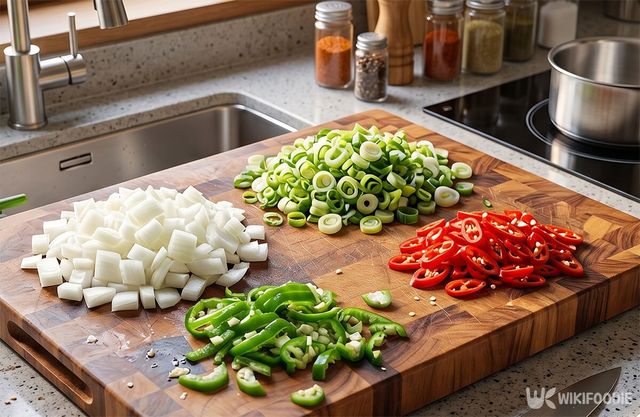 양파, 대파, 고추를 조리하기 편하게 잘게 다져둔다.