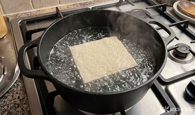 가장 먼저 두부의 식감을 잡아야 한다. 끓는 물에 두부를 1분 정도 가볍게 데치면 조직이 단단해져서 조리 중에 쉽게 부서지지 않는다.