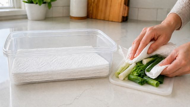 손질한 대파는 보관할 밀폐 용기 높이에 맞춰 나눈다. 이때 흰 부분과 초록 부분을 구분해 담는 것이 좋다. 두 부분은 수분 함량이 달라 함께 보관하면 초록 잎 부분이 먼저 무르면서 다른 부분까지 영향을 줄 수 있다. 용기 바닥에는 키친타월을 3겹에서 4겹 정도 깔아 내부 습기를 흡수하도록 한다. 대파에서 나오는 미세한 수분을 잡아주면 용기 안 습도가 지나치게 높아지는 것을 막는 데 도움이 된다. 대파를 넣은 뒤에도 용기 안쪽 벽면에 물방울이 맺히는지 가끔 확인하면 상태 변화를 조금 더 빨리 파악할 수 있다.
