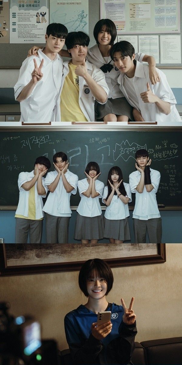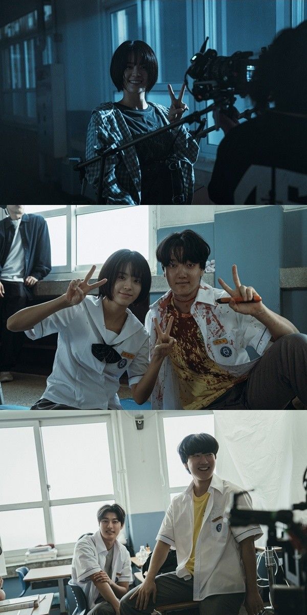 Behind-the-scenes images provide contrast to the series’ dark tone, capturing the youthful chemistry among cast members. Jeon So-young, Kang Mi-na, Baek Sun-ho, Hyun Woo-seok, and Lee Hyo-je appear relaxed and natural together, resembling real classmates. Kim Si-a and Choi Ju-eun’s off-camera moments further highlight their strong on-screen connection.