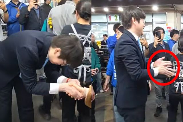 전날 후보로서 첫 일정으로 부산 북구 구포시장을 찾은 하 전 수석은 상인과 악수한 뒤 양손을 비비거나 손을 터는 듯한 모습이 카메라에 포착됐다.